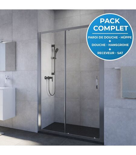 Hüppe - Pack douche : Porte coulissante 120cm + Set de douche avec mitigeur Hansgrohe + Receveur 120x80cm Noir