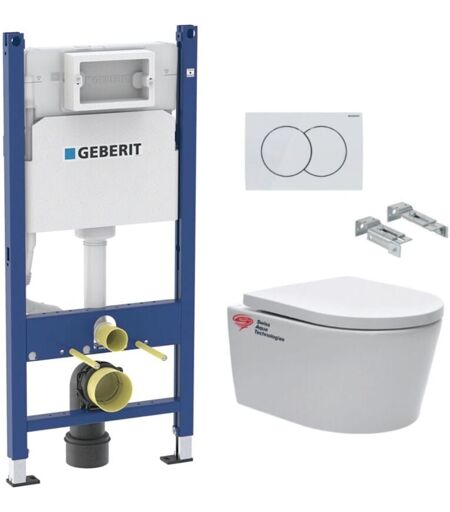 Geberit - Pack Bati-support 112cm + Cuvette Swiss Aqua Technologies sans bride + Plaque blanche (SATrimlessGeb3-RT)
