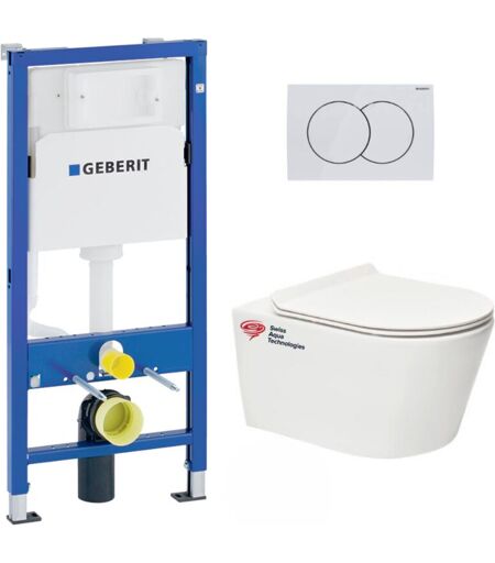 Geberit - Pack Bati-support 112cm + wc sans bride Swiss Aqua Technologies Brevis + Abattant ultra-fin (BREVISGEB1)