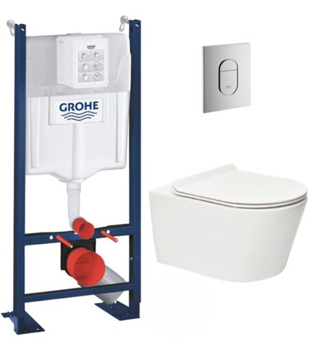Grohe - Pack wc Bâti autoportant + wc sans bride sat Brevis + Abattant ultra-fin softclose + Plaque chrome (ProjectBrevis-8)