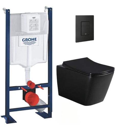 Grohe - Pack wc Bâti-support Rapid sl + wc sans bride Infinitio Design, Noir mat + Abattant softclose + Plaque Noire mat