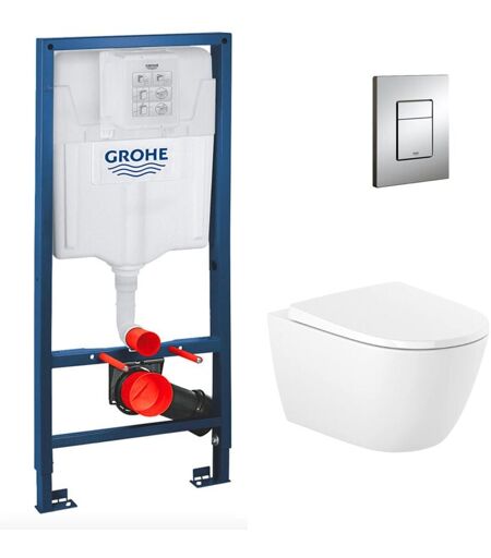 Grohe Pack WC Bâti-support Rapid SL + Cuvette suspendue Roca + Abattant softclose+ Plaque Chrome (RapidSL-Ona-1)