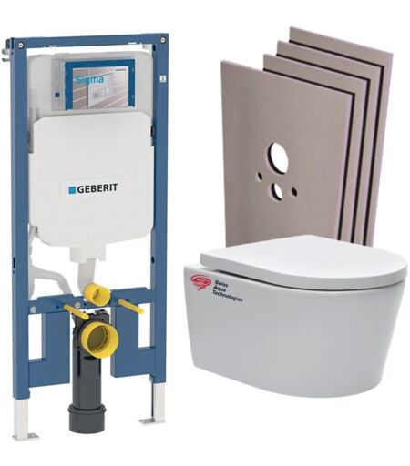 Pack wc Bati Geberit extra-plat + wc Swiss Aqua Technologies sans bride + Abattant + Plaque + habillage (SLIM-SATrimless-C-sabo)
