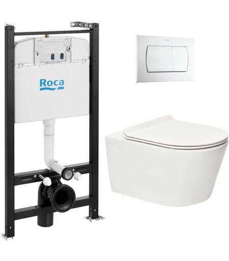 Swiss Aqua Technologies - Pack Bâti-support Roca Active + wc sans bride sat Brevis + Abattant slim, softclose + Plaque Blanche (RocaActiveBrevis-1)
