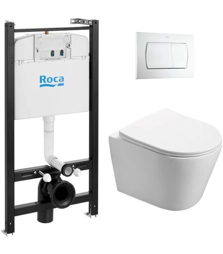 Swiss Aqua Technologies - Pack Bâti-support Roca Active + wc sans bride sat Infinitio + Abattant slim, softclose + Plaque Blanche