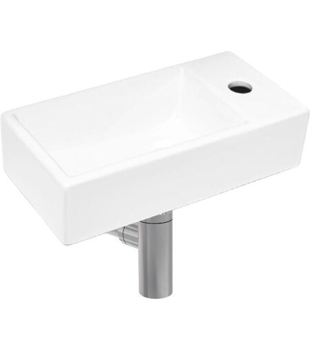 Swiss Aqua Technologies - Brevis Lave-mains suspendu avec trou pour robinetterie à droite, 40,5x20,5x10,5cm + Siphon (SATBRE4020SR-SET2)