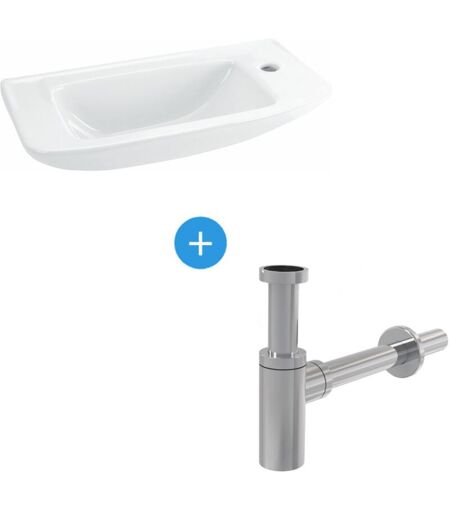Ideal Standard - Ensemble eurovit Lave-mains 125 x 500 x 235 mm, blanc + Siphon Alca en Métal Chromé (R421901-SET)