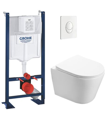 Pack wc Bâti autoportant + wc sans bride sat Infinitio + Abattant softclose + Plaque blanc alpin (ProjectInfinitio-3) - Grohe