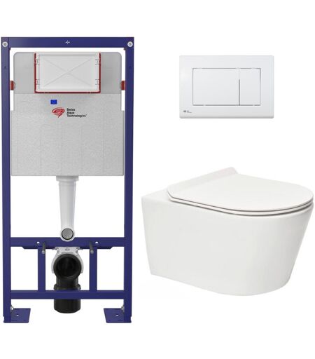 Swiss Aqua Technologies Pack WC bâti-autoportant + WC SAT sans bride fixations invisibles + Abattant softclose + Plaque blanche (SMART-Brevis-9)