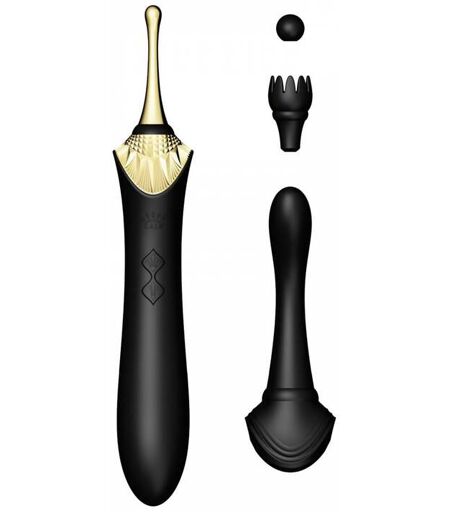 Inspirée de l’histoire et des mystères de l’Égypte antique, la gamme Legend de ZALO retranscrit subtilement l’élégance et le raffinement de cette époque mythique et vous invite à la poursuite du désir et à l’exploration sans retenue ! Le Stimulateur Clitoridien Bess de ZALO (https://www.espaceplaisir.fr/marques/364-zalo) est un sextoy unique en son genre créé pour vous procurer un plaisir unique grâce à une stimulation ultra-ciblée ! Clitoris, tétons, point G... aucune de vos zones érogènes ne sera mise de côté grâce aux trois embouts interchangeables spécialement conçus pour vous faire atteindre le septième ciel en un rien de temps ! Ses finitions sublimes sont rehaussées par des détails dorés qui donnent à votre sextoy des allures de sceptre royal. L'embout en forme de petite boule viendra stimuler votre clitoris de manière ultra-ciblée, vous promettant d'inoubliables orgasmes externes. L'embout en forme de pétales chatouillera vos tétons ou votre clitoris, pour faire monter l'excitation avant d'atteindre le nirvana. Enfin, l'embout incurvé le plus large a été créé pour stimuler directement votre point G, pour vous faire vivre de superbes orgasmes internes ! Un sextoy 3-en-1 qui saura satisfaire chacune de vos envies... Ce magnifique stimulateur délivre une puissante stimulation grâce à son moteur ultra-puissant et à la technologie innovante DirectPower qui se concentre sur les points sensibles, permettant une fréquence allant jusqu'à 10 000 vibrations par minute. Vivez des expériences orgasmiques à chaque utilisation en testant également ses 8 modes de vibration ! Le Stimulateur Clitoridien Bess est fabriqué en silicone de très haute qualité. Sa surface ultra douce est hypoallergénique et garantie sans phtalates. Il est rechargeable via le câble USB magnétique inclus. Une charge de 2 heures permet une utilisation continue qui peut durer jusqu’à 3 heures ! Le sextoy est waterproof afin de faciliter son entretien et de vous permettre de varier les jeux érotiques, même sous l'eau. Silencieux, vous pourrez l'utiliser en toute discrétion. Dimensions : * Longueur totale : 21,9 cm * Longueur insérable : 12,5 cm Découvrez aussi sa version chauffante et avec un 4e embout chapelet anal, Bess 2 (https://www.espaceplaisir.fr/plaisir-100-clitoris/21428-zalo-bess-2-clitoral-vibrator.html) ! Indication complémentaire : Avant sa première utilisation, rechargez complètement votre sextoy pour de meilleures performances par la suite. Pour une utilisation optimale de votre sextoy, espaceplaisir vous recommande d'utiliser un lubrifiant à base d'eau. Veillez à bien nettoyer votre sextoy avant et après chaque utilisation. ...