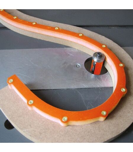 ● Réalisé dans un plastique spécial sans plastifiant. ● Pour fraiser de nombreuses formes de manière très rapide, sûre et précise, y compris des arcs, des éléments courbes et des formes coupées. ● Il dure plus de 10 ans ● made in Germany Réalisez des formes uniques et personnalisées avec une précision et une facilité extrêmes. Ce gabarit innovant, fabriqué en plastique très durable et flexible, convient parfaitement à tous les projets, qu'il s'agisse de meubles personnalisés ou de décors élaborés. Comment ça marche ? Fixation rapide : Vissez le gabarit directement sur le bois, le MDF ou le panneau de particules à l'aide de vis standard. Traçage précis : Dessinez la forme souhaitée sur le gabarit et suivez-la avec votre défonceuse, pour des coupes nettes et précises. Flexibilité maximale : Le gabarit s'adapte à toutes les courbes, même les plus serrées, ce qui garantit des résultats professionnels. Sécurité : En travaillant derrière le gabarit, vos mains sont toujours en sécurité ...