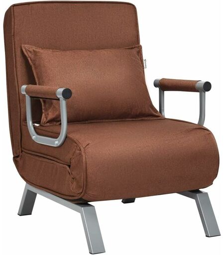 Costway - Fauteuil Convertible,Fauteuil-lit Chauffeuse 1 Place en Tissu avec Coussin,Dossier Réglable de 5 Positions et 2 Accoudoirs pour
