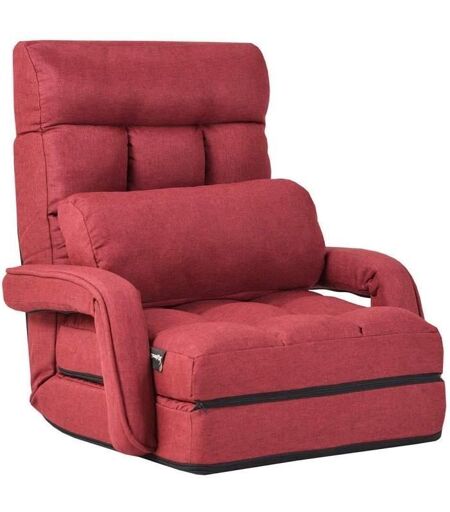 Costway Fauteuil Convertible 1 Place, Canapé-Lit 5 Positions Réglable Avec Oreiller Chauffeuse, Pour Salon / Bureau / Chambre Rouge