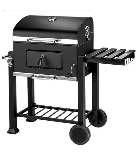 Paramètres du produit: Taille d'emballage: 78 * 53 * 36 cm Poids brut 25 75 kg Matériel: acier Processus de la partie principale: pulvérisation de poudre laminage à froid avec gril filet de grillage émail de four outils d'installation gratuits Hauteur d'ouverture: environ 136 cm Hauteur fermée: environ 107 cm Grande grille (longueur x largeur): environ 55 cm x 36 cm Petite grille de chauffage (longueur x largeur): environ 54 cm x 25 cm Cadre latéral pliable (longueur x largeur): environ 44 cm x 30 cm Compartiment de rangement (longueur x largeur): environ 60 cm x 32 cm Fonctionnalités: 1. Poignée de sécurité anti-brûlure: la poignée en acier inoxydable de ce four au carbone est non seulement durable et de haute qualité mais peut également rester au chaud et éviter les brûlures 2. Bac à charbon relevable: la hauteur du filet de carbone peut être ajustée à la main ce qui est pratique pour ajuster la température pendant le barbecue 3. Filet de grillage en fonte résistant aux hautes ...