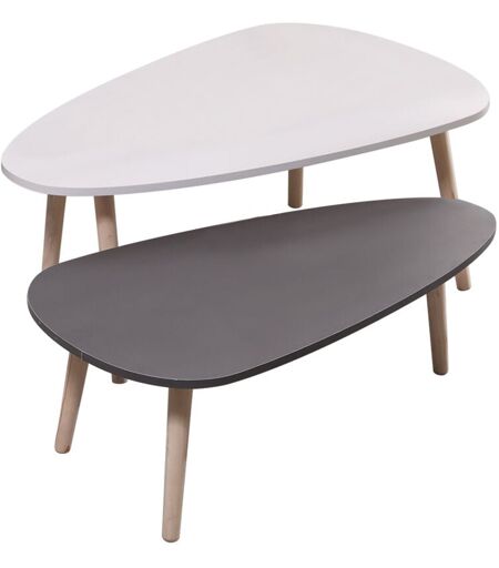 Jeobest - Lot de 2 tables basses gigognes laquées blanc - gris scandinave