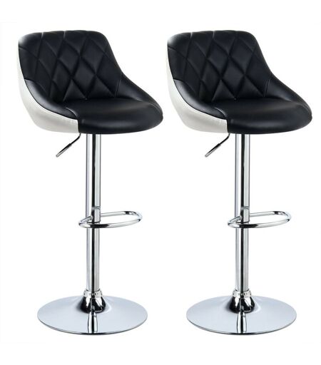 Jeobest - Lot de 2 Tabouret de Bar en Cuir pu Reglable en Hauteur et Pivotant Pied Chromé noir + blanc