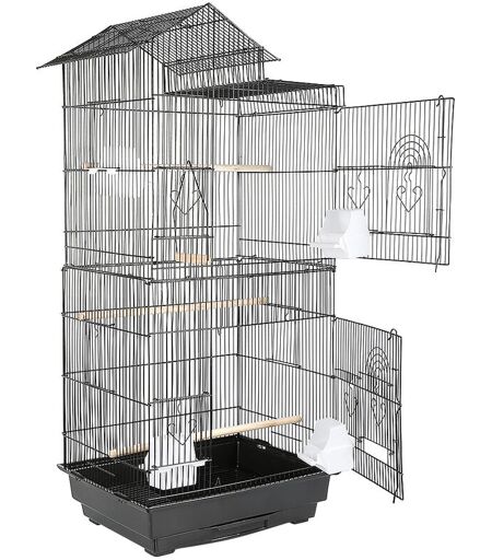 JEOBEST Volière Cage à oiseaux Portable Volière Cage de fer 46×35.5×99cm Noir