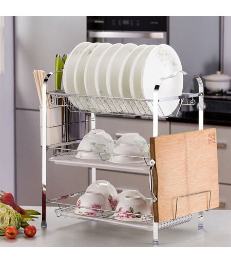 Yongqing - gouttoir Vaisselle Cuisine à 3 Niveaux,avec bac Récupération Amovible et Porte-Couverts,Argent brillant