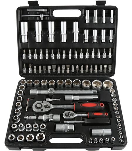 Propriétés: Outil Premium avec 108 pcs. Nouvelle qualité améliorée avec des poignées ergonomiques et un alliage chrome-vanadium de haute qualité! Avec cette vaste boîte à outils, vous êtes prêt pour chaque cas de réparation! Toutes les pièces en acier au chrome vanadium Pour une liste complète des inclus, voir ci-dessous. DOUILLE DR.BIT 18 x 1/4 "": SL4,5,5,6,5 PH1,2 PZ1,2 HEX3,4,5,6, T8,10,15,20,25,27,30 17 x 1/2 ""DR.SOCKETS: 10,11,12,13,14,15,16,17,18,19,20,21,22,24,27,30,32MM 17x BITS (30L): SL8,10,12 T40,45,50,55,60 PH3,4 PZ3,4 HEX7,8,10,12,14 13x 1/4 ""DR.SOCKETS: 4,4,5,5,5,5,6,7,8,9,10,11,12,13,14MM TORX-SOCETS DR. 8 x 1/2 "": E10, E11, E12, E14, E16, E18, E20, E24 8 x 1/4 ""DR. DEEP HEADS: 6,7,8,9,10,11,12,13MM 5 x 1/4 ""DR. PRISES TORX: E4, E5, E6, E7, E8 4 x 1/2 ""DR. JACK DE PROFONDEUR: 14,15,17,19,22MM 3 x clés hexagonales: 1,5,2,2,5MM BARRES D'EXTENSION 2 x 1/4 "": 2"" & 3 "" BARRES D'EXTENSION 2 x 1/2 "": 5"" & 10 "" 2 DOUBLES DE 1/2 ""DR. SPARK: 16MM & 21MM BARRES ...