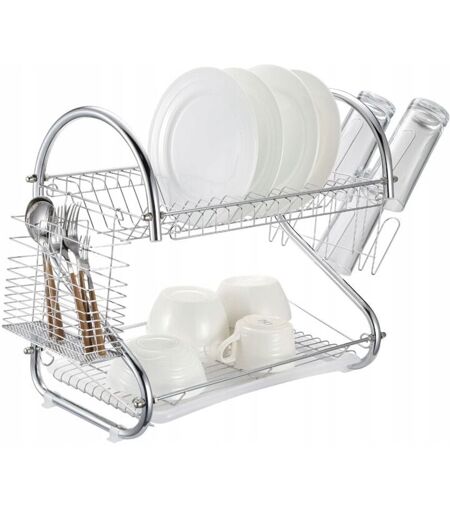 Yongqing - gouttoir à vaisselle 2 étages Porte-couverts Bac de récupération crochets pour tasses et assiettes en métal