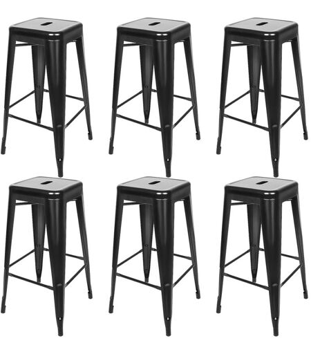 Yongqing - Lot de 6 tabourets de Bar en métal Noir Style Industriel Hauteur 76 cm,Noir