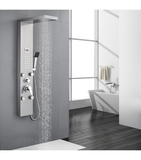 AURALUM Colonne de Douche Hydromassante avec Écran Affichage Temprérature 3 Fonctions Panneau de Douche en Acier Inox avec 4 jets de massage pour Salle de