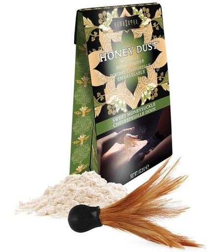 Recouvrez votre corps de la délicieuse Poudre Corporelle Embrassable Honey Dust Chèvrefeuille Doux de Kama Sutra et faites embrasser à votre partenaire chaque parcelle de votre peau. À l'aide du plumeau, déposez délicatement la poudre et transformez votre peau en un terrain de jeu brillant et soyeux. Sa délicieuse odeur de Chèvrefeuille ne fera qu'augmenter votre sensualité. Votre partenaire ne pourra pas vous résister plus longtemps ! Le parfum Chèvrefeuille Doux est délicatement sucré par le nectar du chèvrefeuille ! Retrouvez le aussi en pot de 170 g (https://www.espaceplaisir.fr/kama-sutra-honey-dust-chevrefeuille-doux-170g.html). Existe également avec les parfums Ananas Noix de Coco (https://www.espaceplaisir.fr/kama-sutra-honey-dust-coconut-pineapple-28-g.html), Baiser de Framboise (https://www.espaceplaisir.fr/kama-sutra-honey-dust-raspberry-kiss-28-g.html), Rêves de Fraises (https://www.espaceplaisir.fr/kama-sutra-honey-dust-strawberry-dreams-28-g.html), Mangue Tropical (https://www.espaceplaisir.fr/kama-sutra-honey-dust-tropical-mango-28-g.html) et Crème Vanille (https://www.espaceplaisir.fr/kama-sutra-honey-dust-vanilla-creme-28-g.html). ...