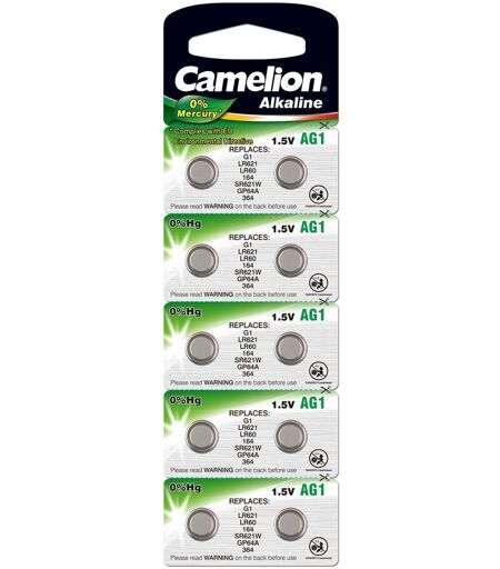 10 Camelion AG1 / LR60 / 164 / 364 / LR621 pile bouton, longue durée de conservation (date d expiration marqué)