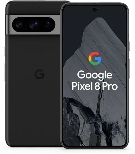 Google Pixel 8 Pro . Taille de l'écran: 17 cm (6.7"), Résolution de l'écran: 1344 x 2992 pixels. Famille de processeur: Google, Modèle de processeur: Tensor G3. Capacité de la RAM: 12 Go, Type de RAM: LPDDR5X, Capacité de stockage interne: 128 Go. Résolution de la caméra arrière (numerique): 50 MP, Type de caméra arrière: Trois modules photo. Capacité de la carte SIM: Double SIM. Capacité de la batterie: 5050 mAh. Couleur du produit: Noir. Poids: 213 g ...