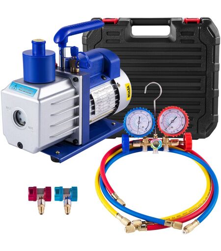 VEVOR Pompe a Vide Climatisation 4,8 cfm, Kit de Pompe a Vide Automatique 1 Etage 1/3 hp, Conditionneur d'Air Frigoriste avec Jauge, Radiateur Intelligent