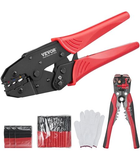Pince à Sertir à Cliquet AWG22-10 Le Sertissage N'a Jamais Été Aussi Simple ! Révolutionnez votre expérience du sertissage avec notre outil de sertissage. La pince à cliquet VEVOR permet de sertir les connecteurs thermorétractables, cosses en nylon et à embout. Avec une plage de sertissage de AWG22-10, elle peut répondre à vos différents besoins de sertissage. Conception Sans Effort Mâchoires Tricolores Robuste & Durable Opération Facile Pince à Sertir à Cliquet AWG22-10 Révolutionnez votre expérience du sertissage avec notre outil de sertissage. La pince à cliquet VEVOR permet de sertir les connecteurs thermorétractables, cosses en nylon et à embout. Avec une plage de sertissage de AWG22-10, elle peut répondre à vos différents besoins de sertissage. Caractéristiques principales Conception Sans Effort : Notre pince à sertir est dotée d'une structure à cliquet de précision pour un sertissage facile, fluide et sûr, adapté au sertissage des cosses thermorétractables/isolées AWG22-10. La ...