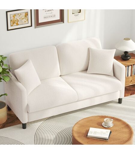 KEEPBUYING Canapé 2 Places en Velours Teddy,Canapé Droit Confort en Bois Massif,Loveseat avec Accoudoirs,165 x 78 x 89cm,Beige