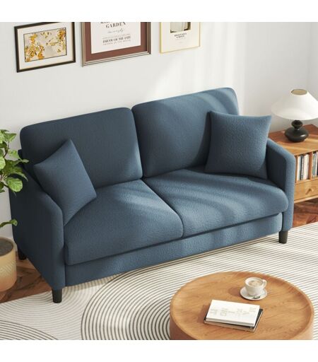 Keepbuying - Canapé 2 Places en Velours Teddy,Canapé Droit Confort en Bois Massif,Loveseat avec Accoudoirs,165 x 78 x 89cm,Bleu Gris