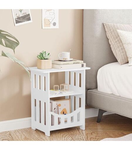 KEEPBUYING Table de Chevet à 3 Niveaux,Bout de Canapé Table Café,Table d'Appoint de Petits Espaces Contemporain,pr lecture/petit déjeuner,36x40x24cm,Blanc