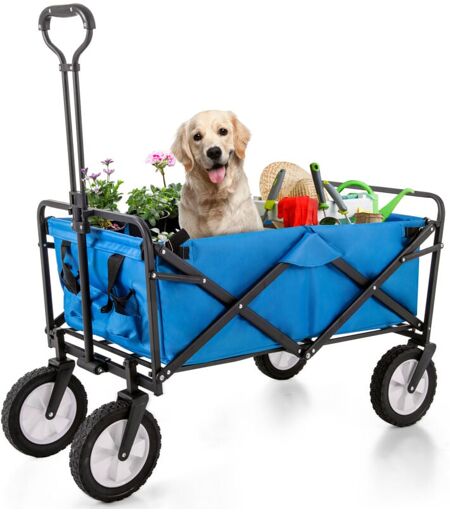 Keepbuying - Chariot de Jardin Transport 100 kg Pliable,Chariot à Outils,2 Poches filet,Barre de poussée télescopique,Tout-terrain - Noir