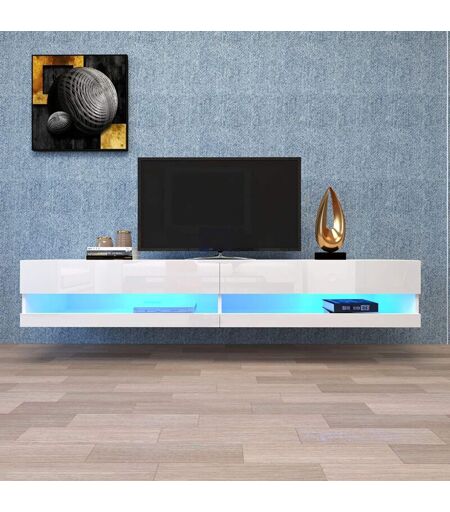 KEEPBUYING Meuble TV avec éclairage LED, Meuble TV de haute qualité 140 x 40 x 30.5cm - Blanc
