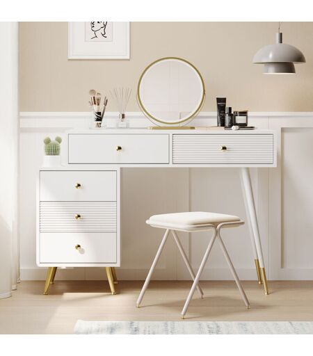 KEEPBUYING Ensemble de Coiffeuses avec Miroir et éclairage LED,5 Tiroirs,Armoire Latérale Réglable et Design Extensible,100x40x78cm,Blanc