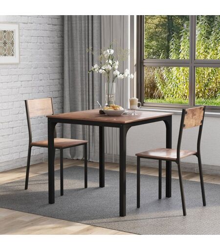 KEEPBUYING Ensemble Table à Manger avec 2 Chaises - Style Industriel - Carré-2 Personnes - 70x70x75cm - Marron Vintage+Noir