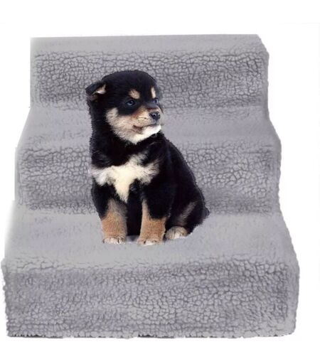 KEEPBUYING Escalier pour animaux de compagnie 45x35x30cm,Escalier pour chien chat avec housse en peluche 3 marches jusqu’à 30kg - Gris
