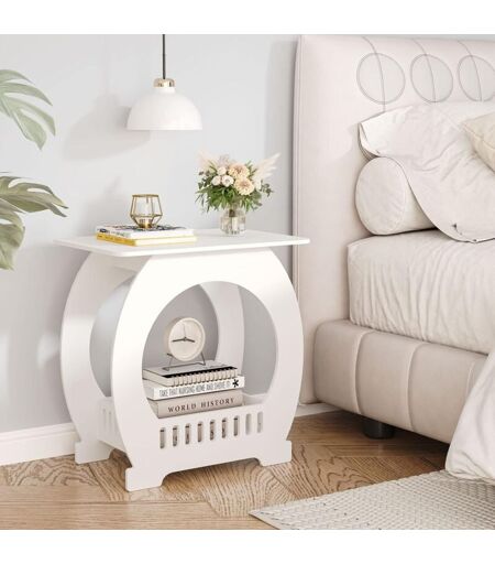 KEEPBUYING Table de Chevet,Table de Nuit avec Panier,Table à Café de Petits Espaces,Bout de Canapé,Table de Salon - 44x30x46cm - Blanc