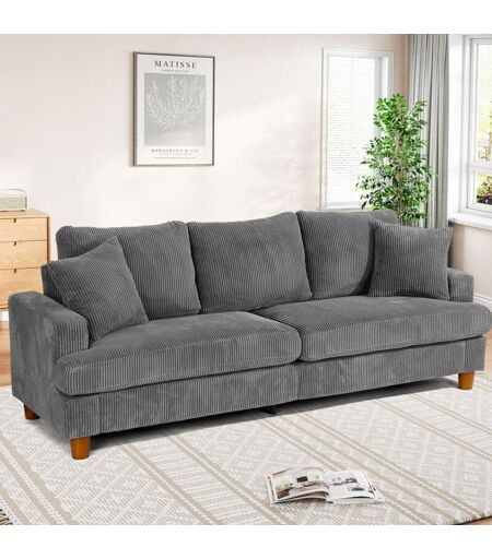 Keepbuying - Canapé en Velours Côtelé 3 Places,Grand Canapé Droit Rembourré Moderne avec Sièges extra profonds de 53cm,2 Coussins,220L x 76l x 84H