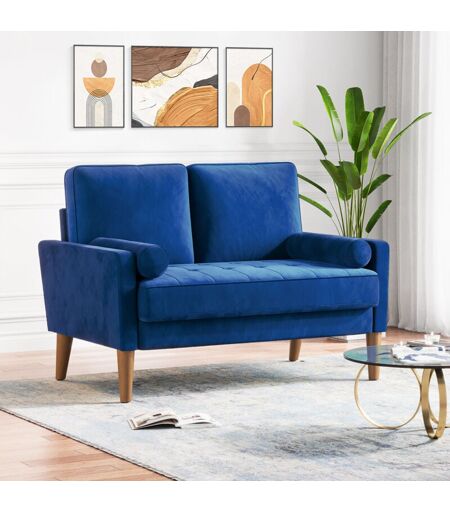 Yoleo - Canapé à 2 Places Scandinave,Mini Canapé à Bras Roulés en Velours Loveseat,Fauteuil Salon avec Accoudoirs,121x77x87cm - Bleu