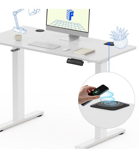 FlexiSpot Bureau Assis Debout 110x54, recharge sans fil, Blanc