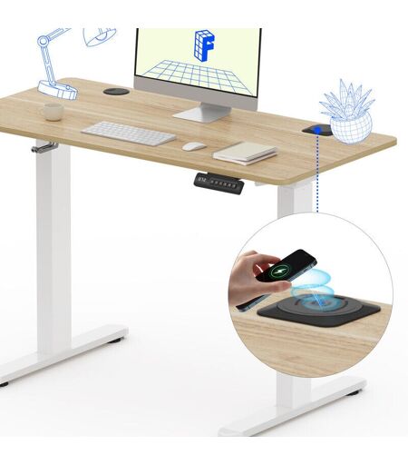 FlexiSpot Bureau Assis Debout 110x54, recharge sans fil, Maple
