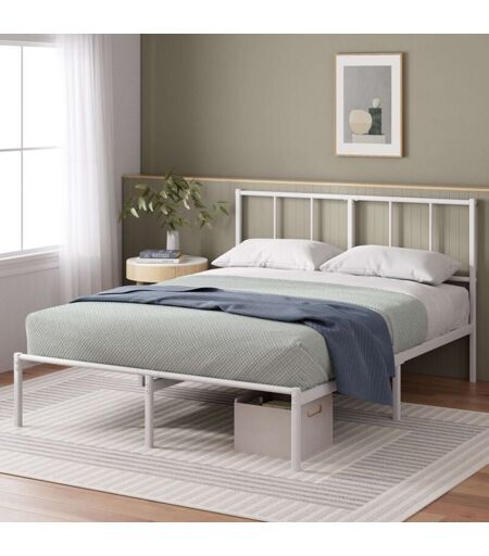 Zinus - Lit Camille 2 personnes - Lit 140x190 cm - Cadre de lit en métal avec tête de lit - Hauteur 30cm - Lit avec support de lattes en métal - Blanc