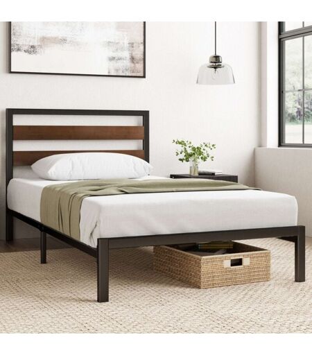 Zinus - Kai Lit 90x190 cm - Cadre en bambou et métal avec tête de lit, lattes robustes, montage facile, 35 cm de hauteur, Noir/Marron