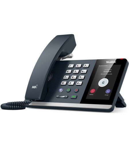 Yealink MP54 Microsoft Teams Edition. Type de produit: Téléphone IP, Couleur du produit: Gris, Type de combiné: Combiné filaire. Système d'exploitation installé: Android, Produits compatibles: Microsoft Teams. Écran: LCD, Taille de l'écran: 10,2 cm (4"), Résolution de l'écran: 800 x 480 pixels. Codecs vocaux: AGC, AJB, CNG, G.711a, G.711u, G.722, G.722.1, G.722.1C, G.723, G.726, G.729ab, OPUS, PLC, Soie,.... Type d'interface LAN Ethernet: Gigabit Ethernet, LAN Ethernet : taux de transfert des données: 10,100,1000 Mbit/s, Protocoles réseau pris en charge: IPv4/IPv6, SNTP ...