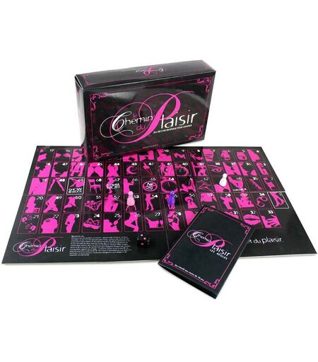 Le Jeu de société Le Chemin du Plaisir est un Jeu de l'oie coquin pour couples. Vivez un parcours de 69 gages érotiques spécialement conçus pour éveiller votre désir et stimuler votre créativité. A découvrir à 2 joueurs ou plus, entre amoureux ou amateurs de plaisirs charnels. A l’aide du dé, avancez tour à tour sur le parcours composé de 69 gages allant du plus soft et au plus hot. Commencez à jouer et éveillez votre corps grâce à des gages sensuels, continuez avec des gages plus osés qui l’excite vivement et terminer en beauté par des gages faisant appel à votre sensualité. Le but du jeu est d'arriver en premier au centre du plateau ! Le Jeu de société Le Chemin du Plaisir contient : 1 plateau de jeu de 69 cases, 6 pions, 1 dé, 1 livre de gages décrivant les 69 gages. Exemples de gages : "Frôlez avec vos mains, les parties du corps les sensibles de votre partenaire, qui se fera un plaisir de vous guider si besoin", "Plaquez votre partenaire au sol, maintenez-lui les mains, frottez-vous à lui et faites en sorte de le rendre fou", "Montrez votre fabuleux déhanché en enlevant le vêtement de votre choix". Durée moyenne d'une partie : 1 à 2 heures, selon les envies et l'excitation... ...