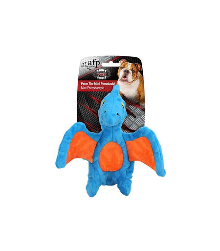 AFP-Jouet Chien - AFP Peluche Peter le Mini Ptérodactyl Taille S Bleu et orange - 18,5 x 15 x 22,5 cm
