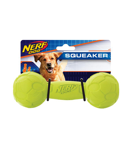 Le jouet haltère à sifflet de la marque Nerf coloris rouge allie un design optimal et fonctionnel à un matériau spécial autorisant un usage intensif sur le long terme. Cet haltère est un jouet idéal pour occuper le chien à mâchouiller mais également pour jouer à lancer/rapporter ou pour une occupation lors de l'absence du maître. Fabriqué avec du caoutchouc durable, ce jouet produit un son qui incite le chien à jouer davantage pour une stimulation physique et mentale. Les rainures au milieu favorisent la bonne hygiène des dents et des gencives limitant le tartre et la plaque dentaire. ...